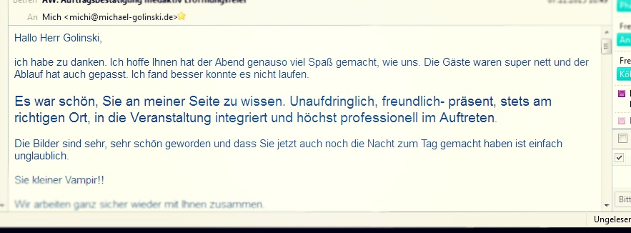 Anscheinend habe ich etwas gefunden das mir liegt und ich gerne mache. Noch wichtiger ist aber wohl, dass es genügend Leute gibt, denen gefällt was ich tue. Denn letztlich geht es bei dem Ganzen nicht wirklich um mich. Auch wenn es manchmal den Eindruck macht. Das ist nur Marketing. Ehrlich gesagt freu ich mich einfach über das Erreichte und will euch ein wenig daran teilhaben lassen. Auch wenn ich letztendlich ersetzbar und unwichtig bin. In Wirklichkeit geht es nämlich um die Leute, die auf den Fotos zu sehen sind und darum, ihre wichtigsten Momente in Fotos festzuhalten. Wer mich etwas kennt weiß, dass ich mein größter Kritiker und selten mit mir zufrieden bin. Und wer mich noch etwas besser kennt weiß, dass ich jedem einzelnen und manchen ganz besonders zu tiefstem Dank verpflichtet bin. Für die Geduld, Verständnis und Unterstützung über all die lange Zeit! Aus tiefstem Herzen: Danke!